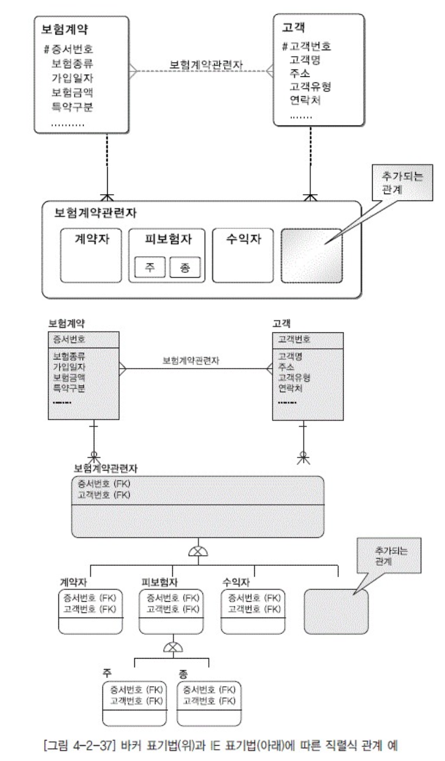 - 어떤 엔터티가 두 개 이상의 다른 엔터티의 합집합과 관계를 가지는 것을 배타적(Exclusive) 관계