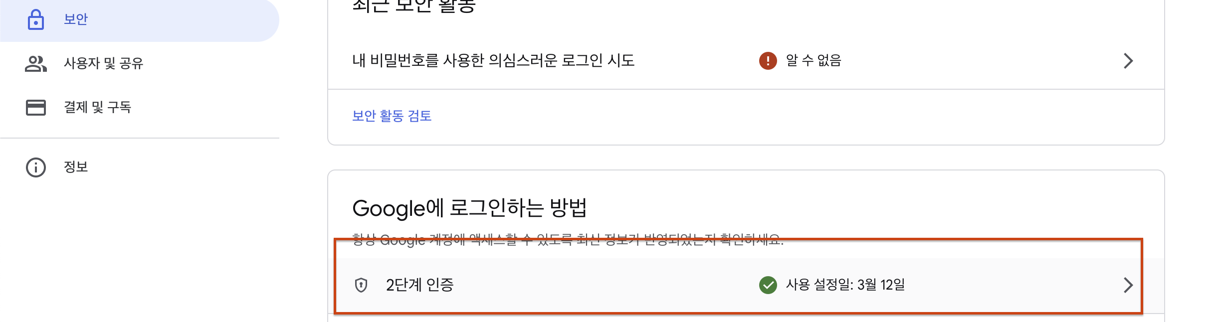 - 구글 보안 설정
