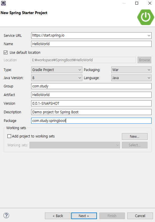 - src/main/java: 생성한 자바 소스 파일을 위치시킨다.