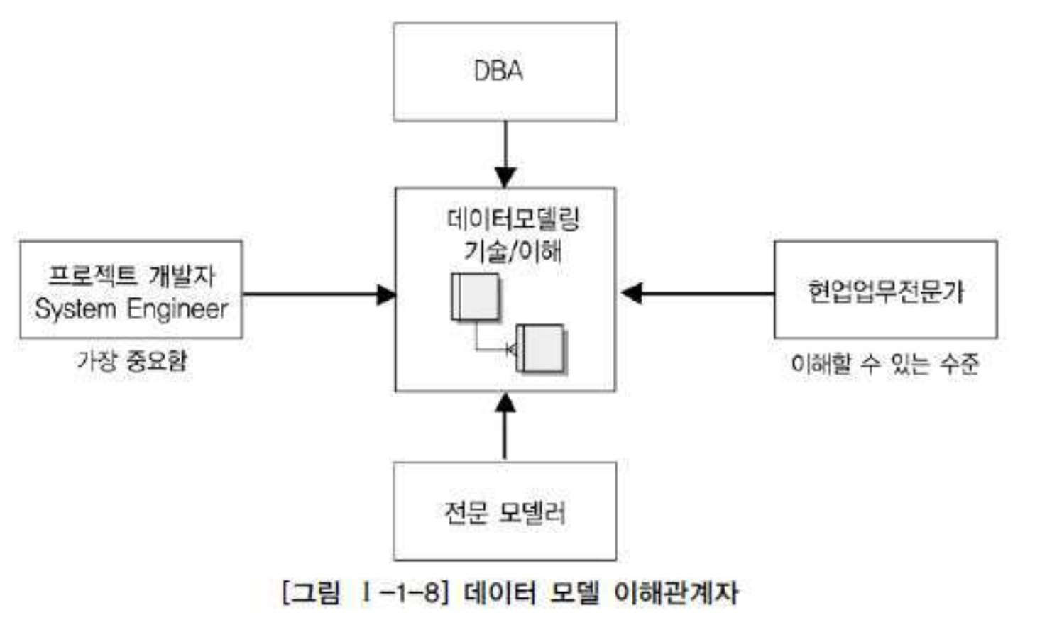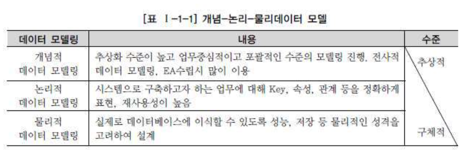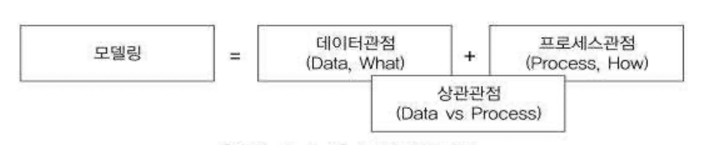 - 모델링은 크게 세 가지 관점인 데이터관점, 프로세스관점, 데이터와 프로세스의 상관관점으로 구분하여 설명할 수 있다.