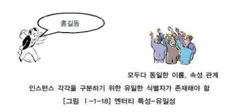 - 유일한 식별자는 그 엔터티의 인스턴스만의 고유한 이름