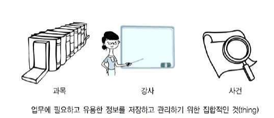 ※ 엔터티란 "업무에 필요하고 유용한 정보를 저장하고 관리하기 위한 집합적인 것 (Thing)"으로 설명할 수 있다.