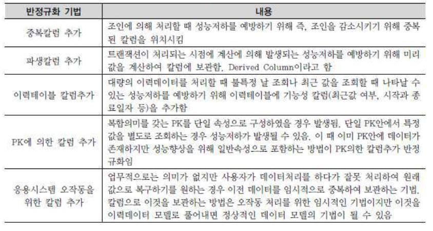 · 반정규화의 대상에 대해 다른 방법으로 처리할 수 있는지 검토