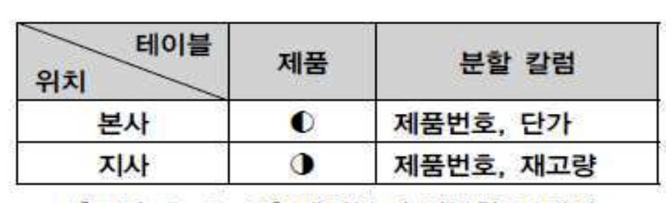 - 테이블 복제(Replication) 분산은 동일한 테이블을 다른 지역이나 서버에서 동시에 생성하여 관리하는 유형이다.