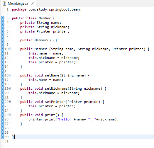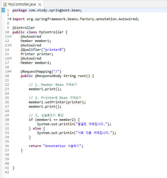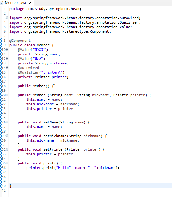 - 11라인: 빈이 생성될 때 member1 변수가 참조할 객체를 자동으로 찾아온다.