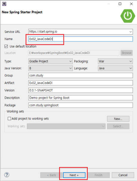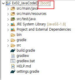 ※ 프로젝트 명 옆에 [boot]표시가 보이지 않는다면 표시될 때까지 잠시 기다린다.