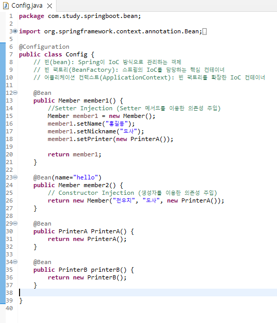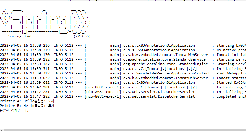 - 13라인: 빈이 생성될 때 printer변수가 참조할 객체를 자동으로 찾아온다.