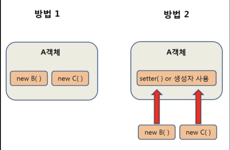 →방법2 : B, C 객체가 외부에 생성되어 있고, A객체에 주입된다.