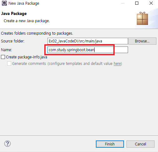 - 10라인: 빈이 생성될 때 name변수의 기본값으로 "홍길동"으로 지정