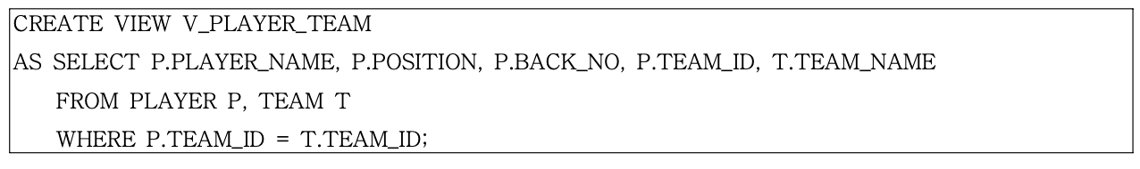 - 뷰는 다음과 같이 CREATE VIEW문을 통해서 생성할 수 있다.