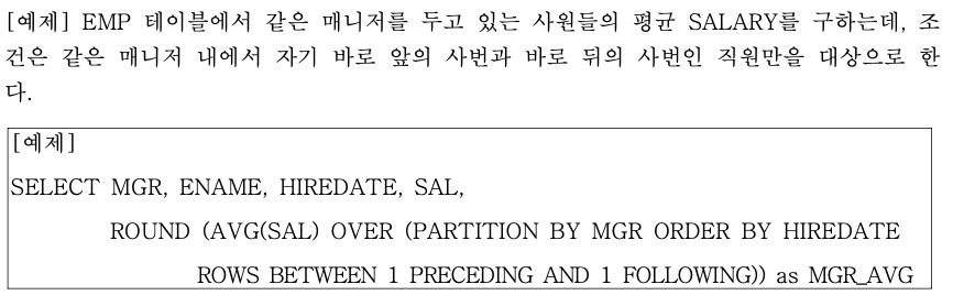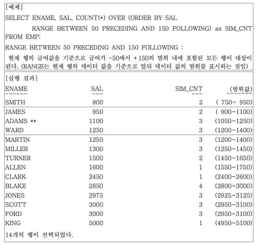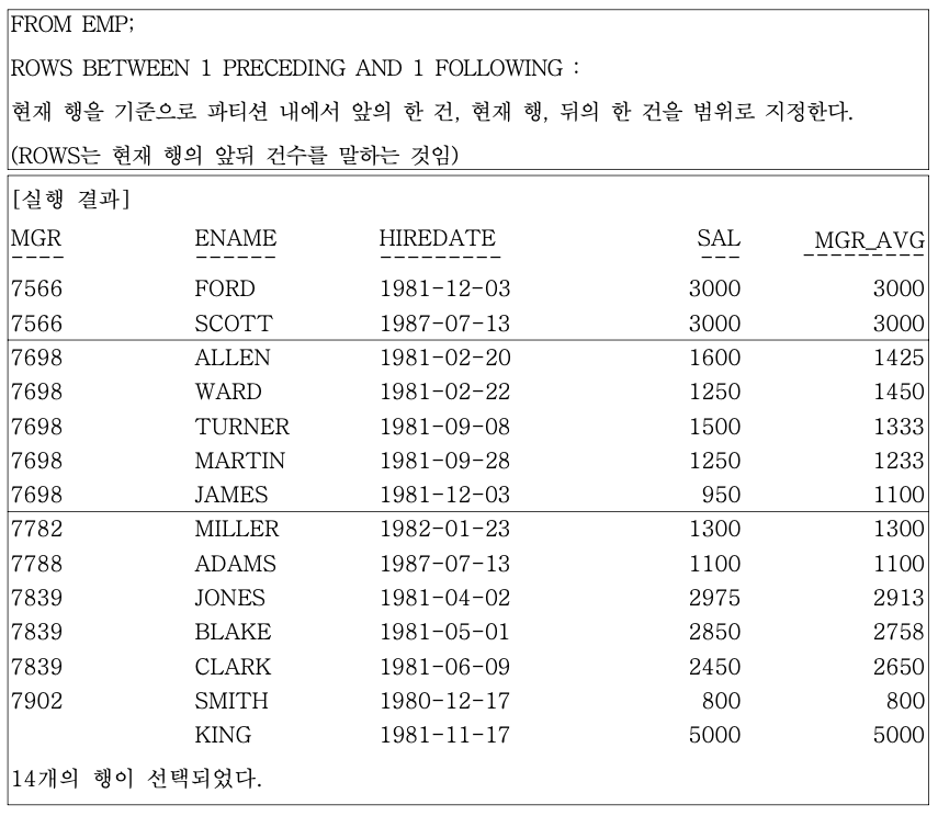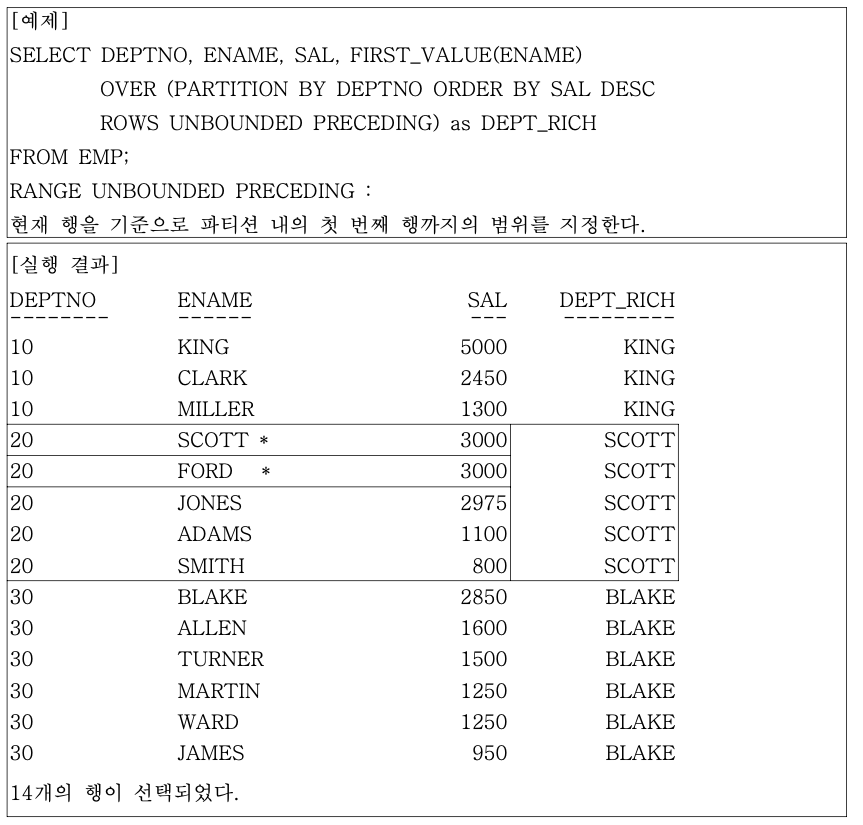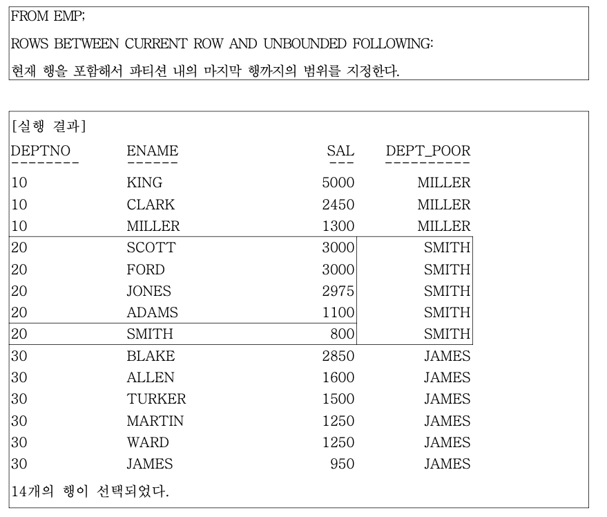 - WINDOWING 절: 함수의 대상이 되는 행 기준의 범위를 강력하게 지정할 수 있다.
