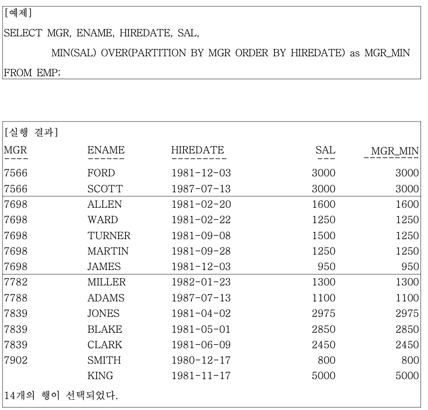 - MIN 함수를 이용해 파티션별 윈도우의 최솟값을 구할 수 있다.