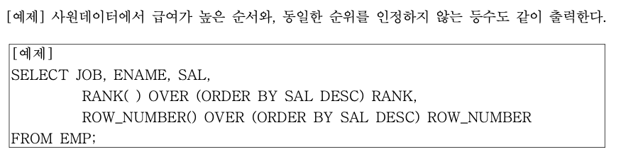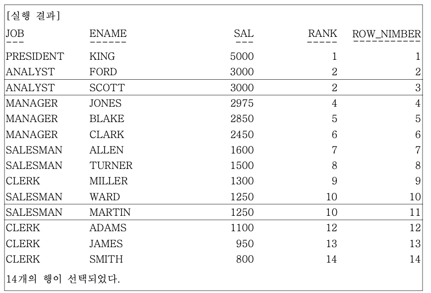 - 순위 관련 함수(RANK, DENSE_RANK, ROW_NUMBER)