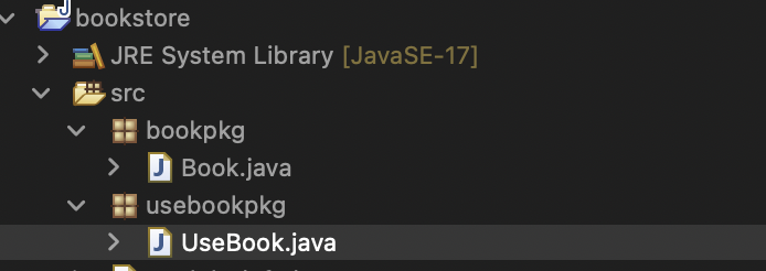 bookpkg.Book bk = new bookpkg.Book(101, "algorithms", 250000);
